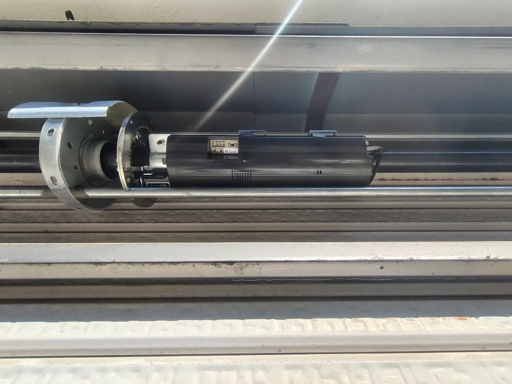 また、モーターや駆動部も専用品となる為、今回は上回り交換(制御盤・モーター・駆動部・シャフトのセット)工事を行う事となりました。