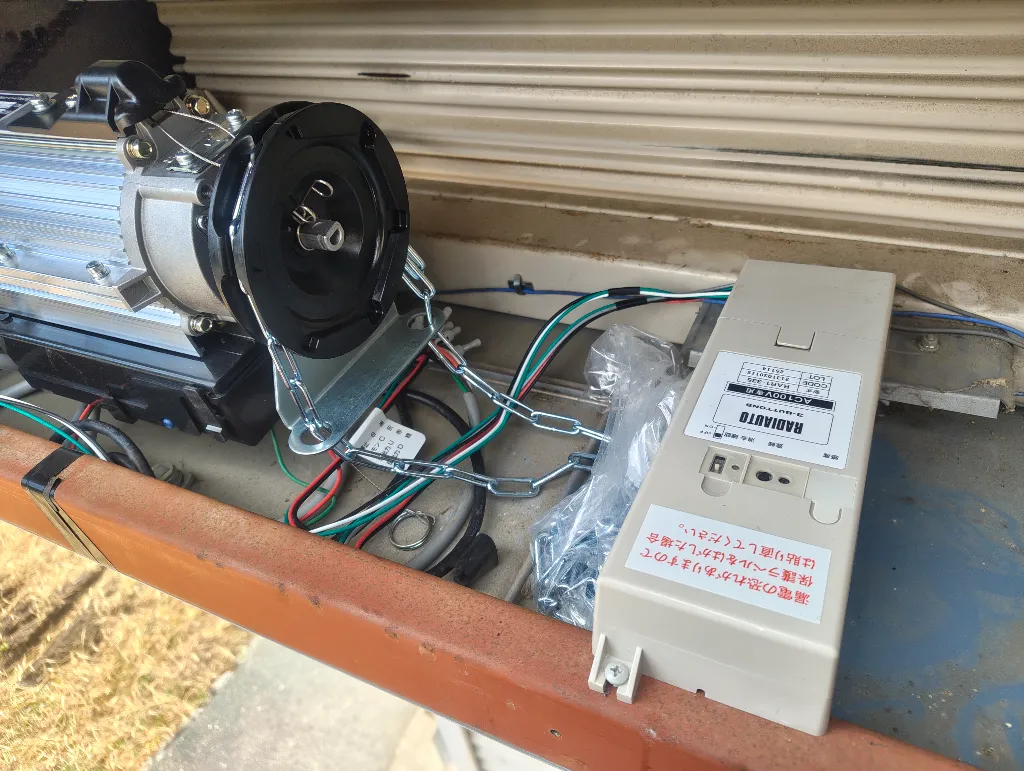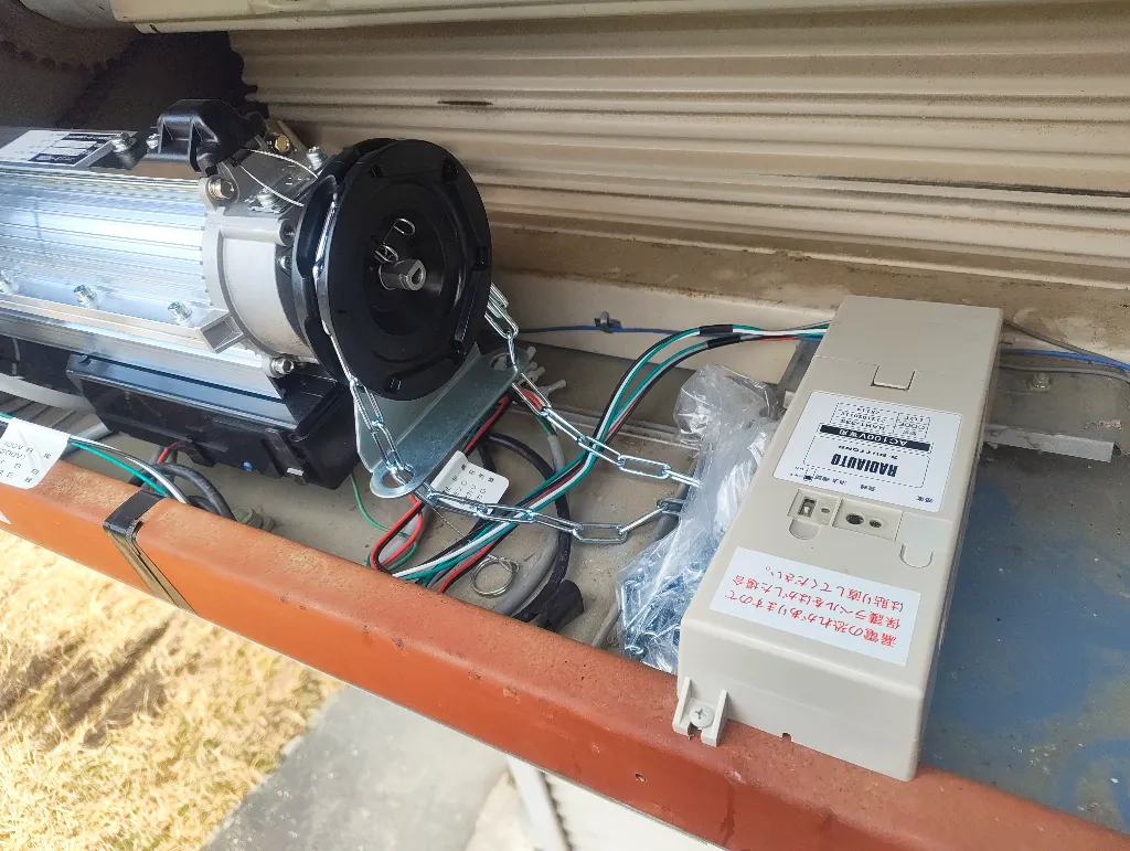 シャッター修理事例 リモコン無しのモーターへリモコン装置を追加しました。