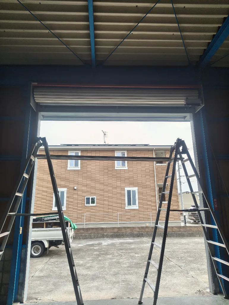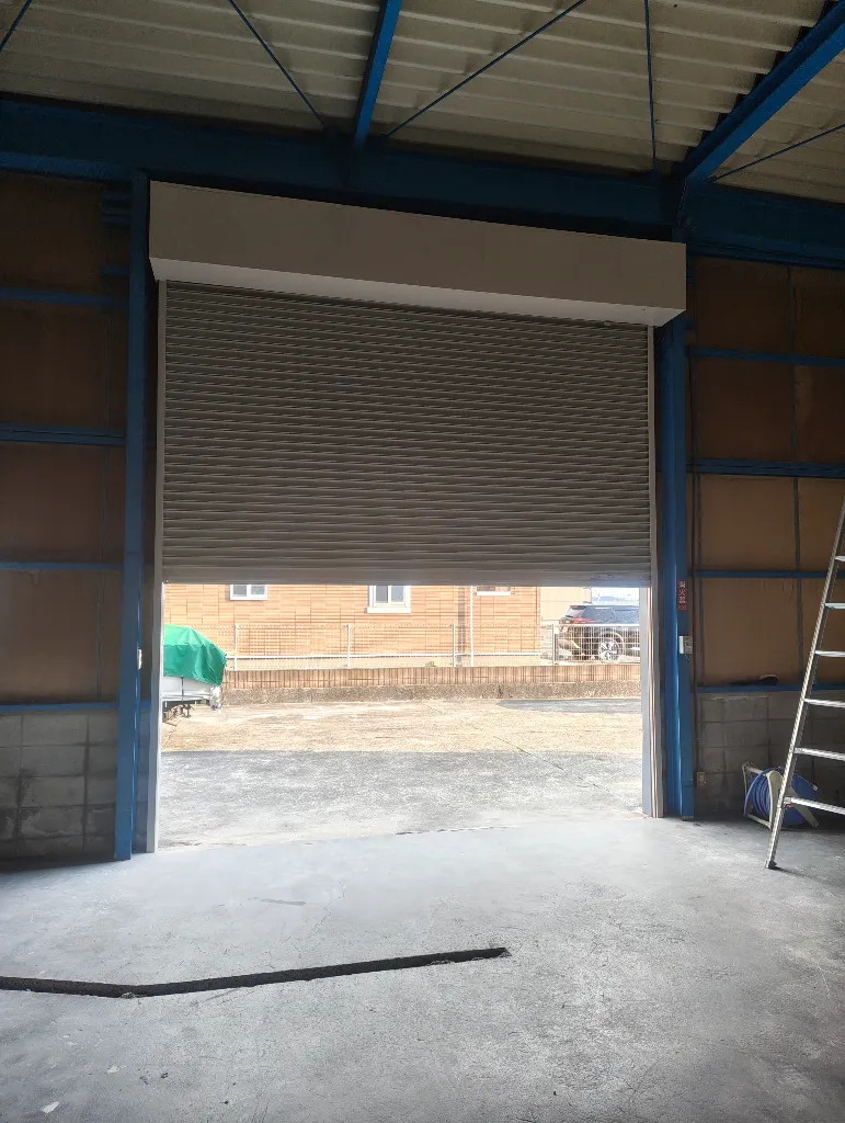 30年ほど経過した手動2連のシャッターを1連の電動シャッターへ取替を行いました!