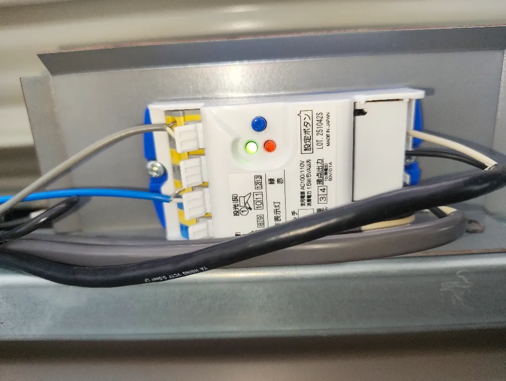 今回のシャッターは光軸が1軸しかないタイプの為、緑のランプのみが点灯している状態が正常です。